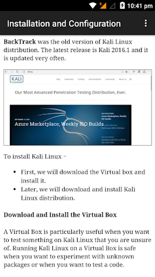 Kali Linux is one of the best open-source security packages of an ethical hacker, containing a set of tools divided by categories. Kali Linux can be installed in a machine as an Operating System, which is discussed in this tutorial. Installing Kali Linux is a practical option as it provides more options to work and combine the tools. This tutorial gives a complete understanding on Kali Linux and explains how to use it in practice.