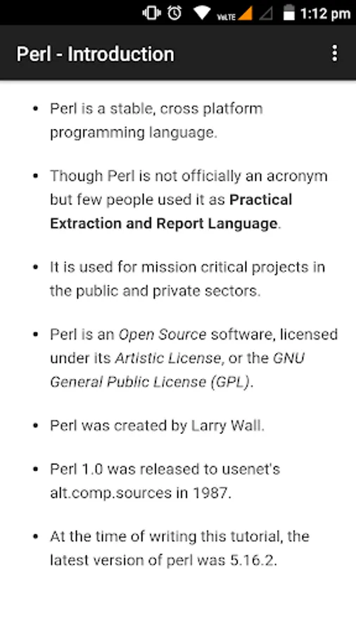 Perl is a programming language developed by Larry Wall, especially designed for text processing. It stands for Practical Extraction and Report Language. It runs on a variety of platforms, such as Windows, Mac OS, and the various versions of UNIX. This tutorial provides a complete understanding on Perl.