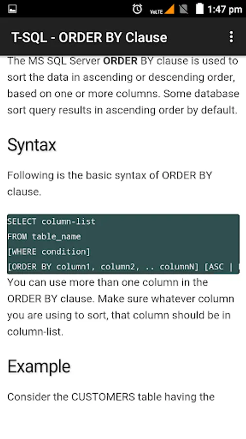 T-SQL (Transact-SQL) is an extension of SQL language. This tutorial covers the fundamental concepts of T-SQL such as its various functions, procedures, indexes, and transactions related to the topic. Each topic is explained using examples for easy understanding.