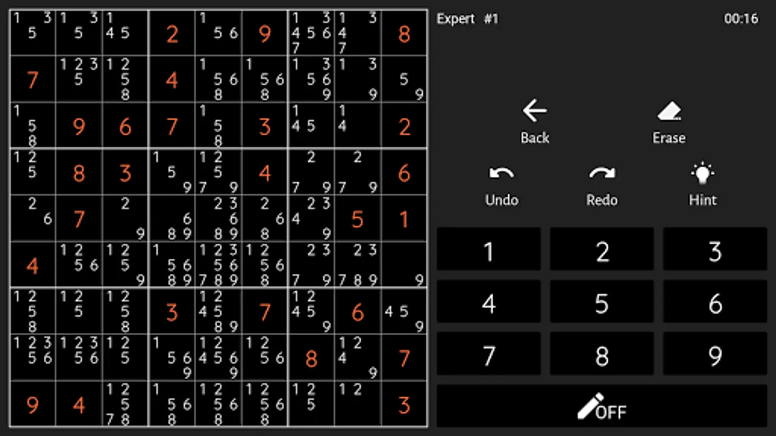If you are just starting to play classic puzzle game of Sudoku there is Easy level for you. If you think you are the expert in Sudoku then the Expert level will give your brain really good workout. There are four levels Easy, Medium, Hard and Expert. As we said there is something for everyone.