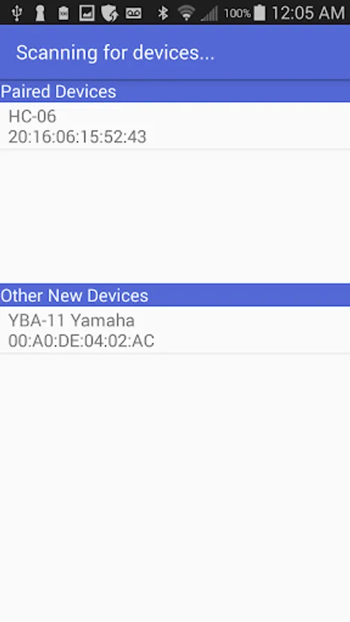 * Click on the Bluetooth icon to connect with the robot's Bluetooth serial adapter