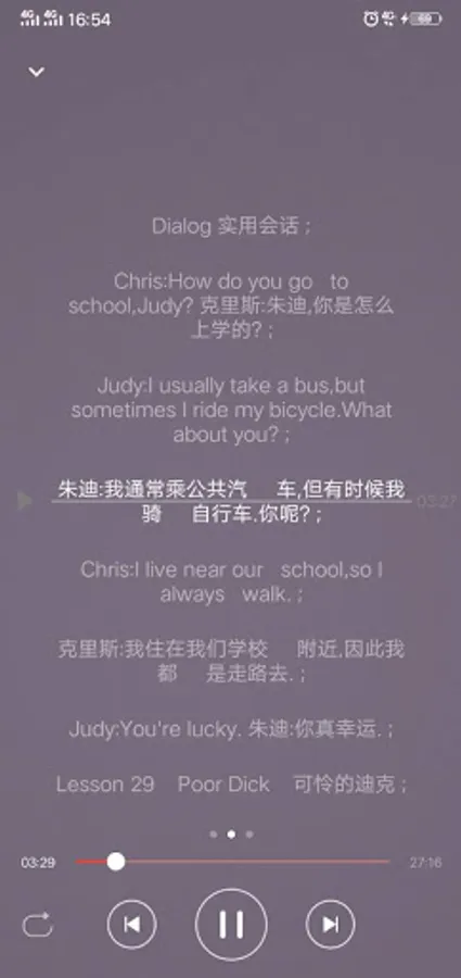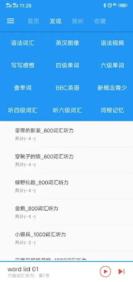 English listening, text, translation, words, listening playback are synchronized with the text display.