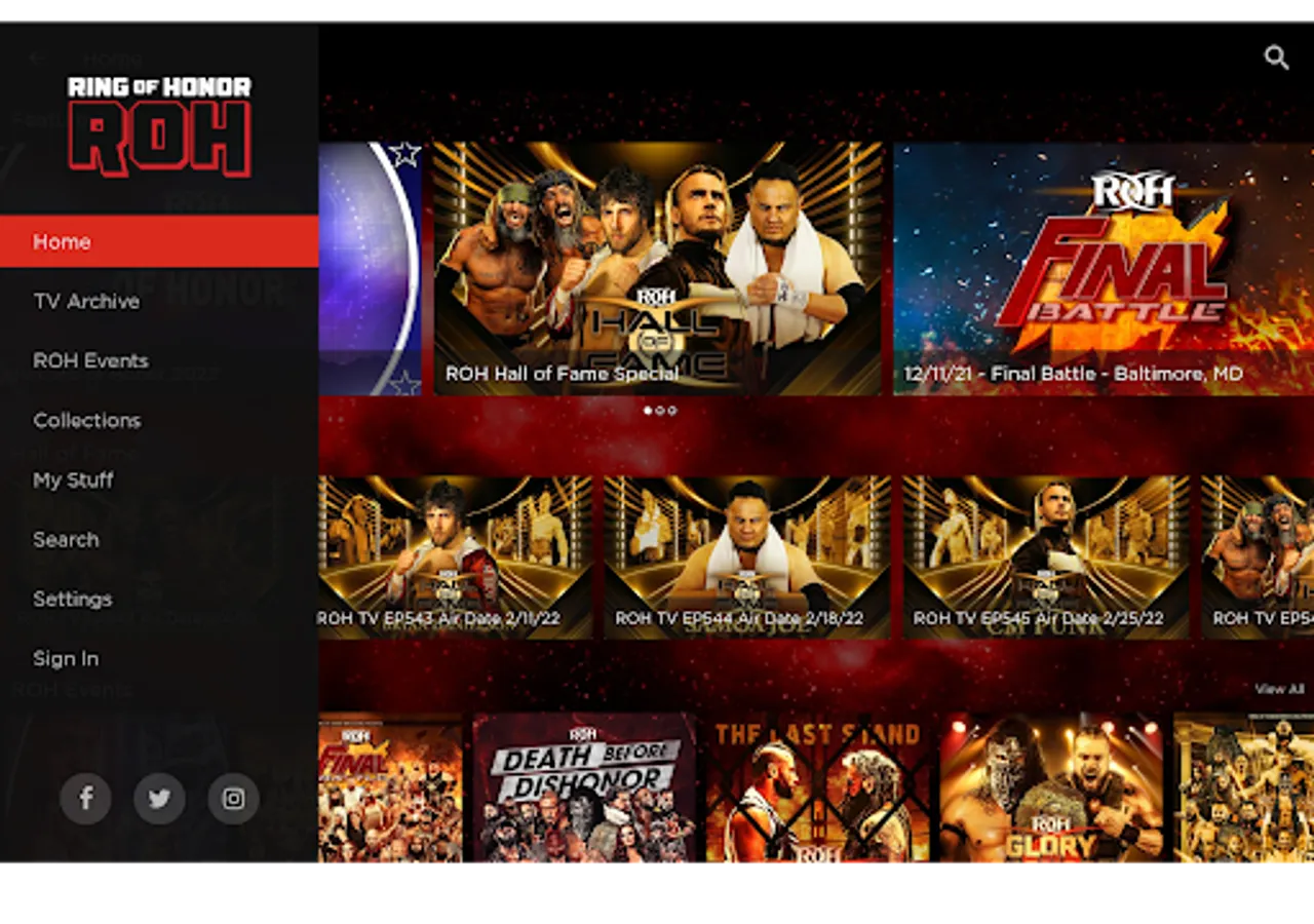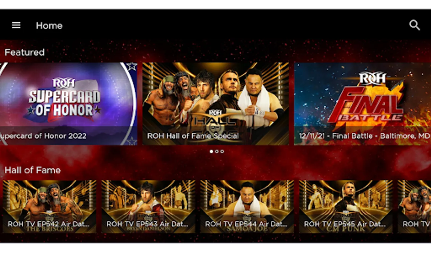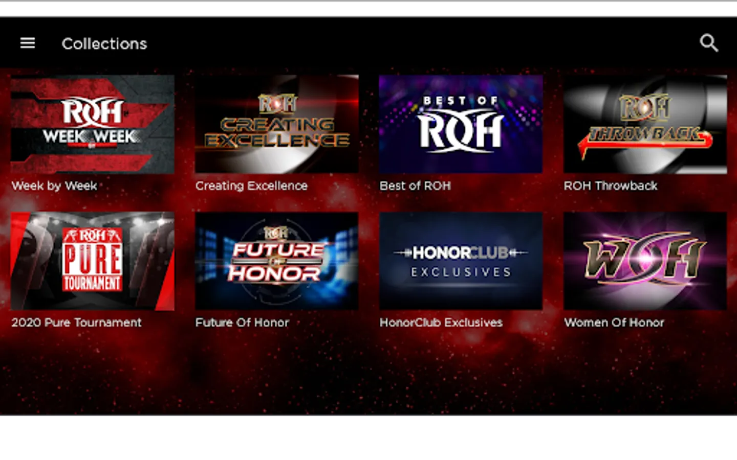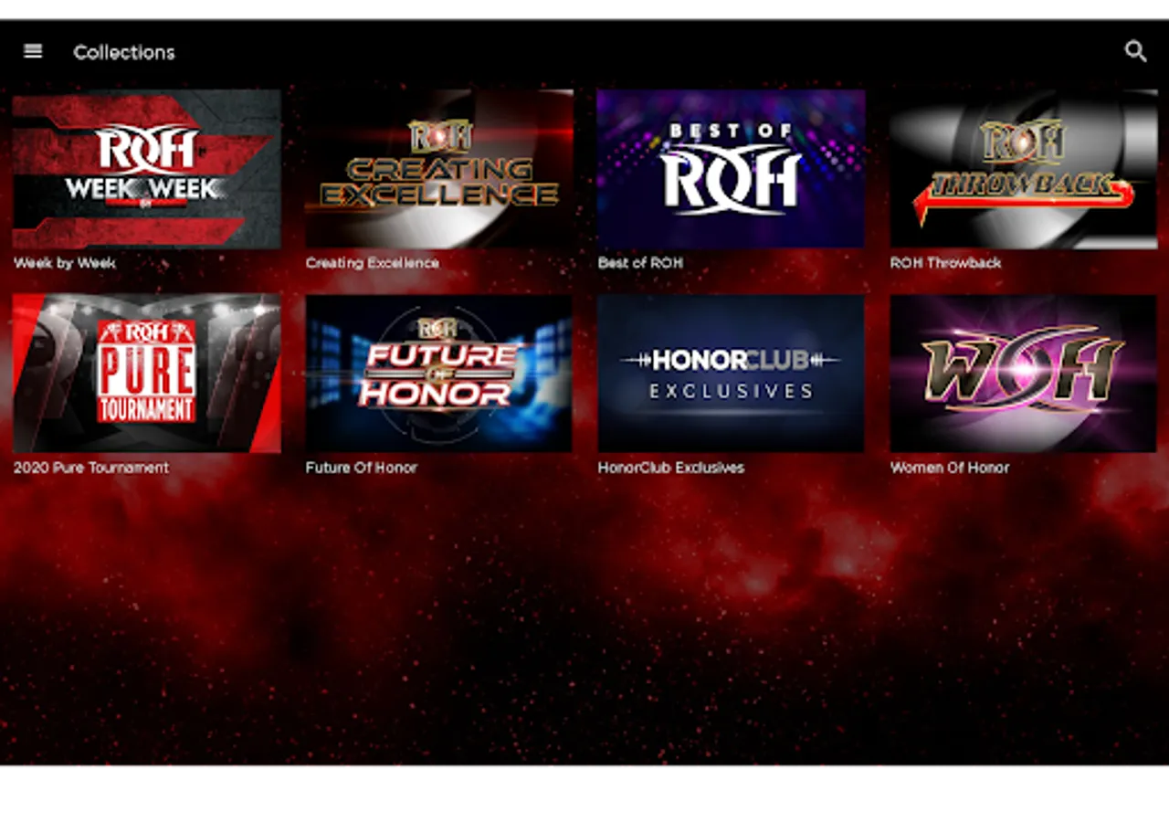 The ROH App allows fans to stream thousands of hours of VOD content from the Ring of Honor archive. Subscribe to HonorClub and receive access to the entire ROHTV archive, past live events, special features, and pay-per-views.