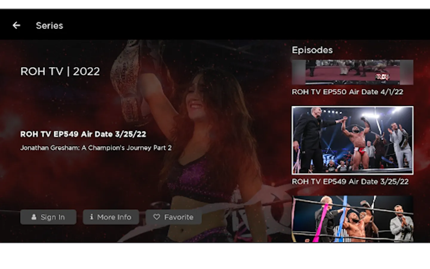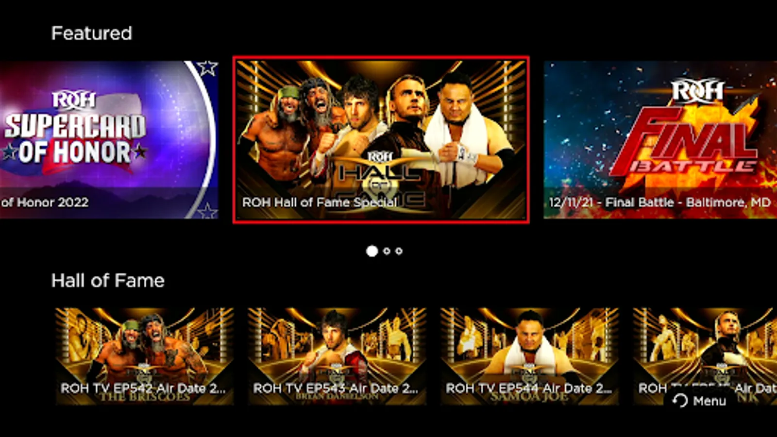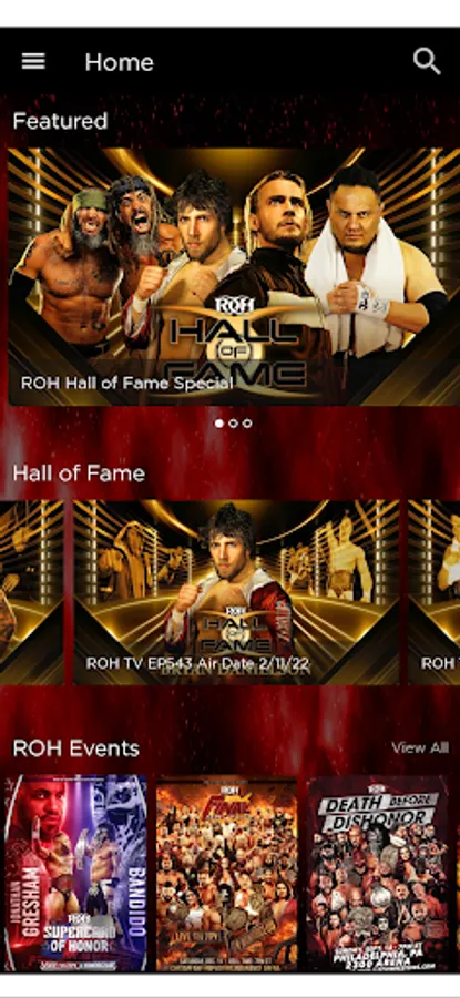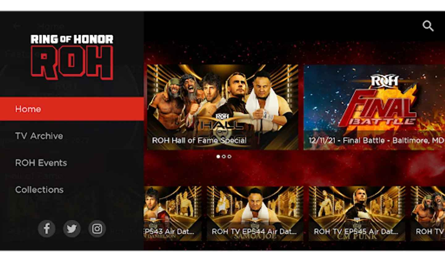 The ROH App allows fans to stream thousands of hours of VOD content from the Ring of Honor archive. Subscribe to HonorClub and receive access to the entire ROHTV archive, past live events, special features, and pay-per-views.