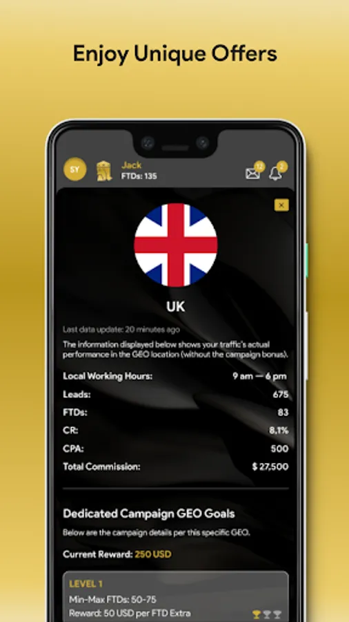 Concierge is ROI Collective's premium partners' club, where the leading network's affiliates can access incredible offers and lucrative campaigns. Its game-oriented layout makes the process of onboarding campaigns and tracking results fun and more user-friendly. From the number of FTDs to conversion rates, Concierge shows each parameter in a sleek design. Affiliates also enter different levels depending on their overall performance.