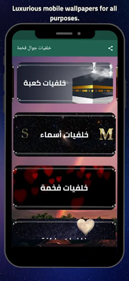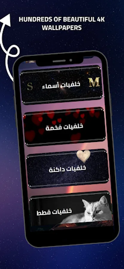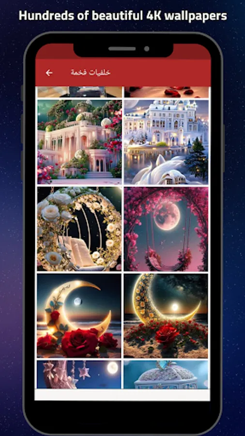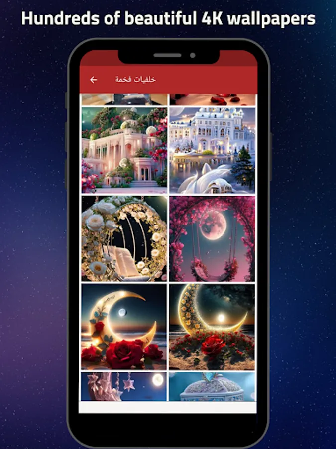 The "Beautiful Wallpaper HD" app is the perfect choice for those who want to continuously update their mobile phone wallpapers and get the best and most beautiful high-quality wallpapers. The app features a large and diverse collection of luxurious 4K wallpapers that cater to various tastes and occasions. The app includes popular black luxury 4K wallpapers that many users love, giving your phone an elegant and attractive look. It also includes Allah wallpapers, amazing mobile wallpapers, and WhatsApp wallpapers.