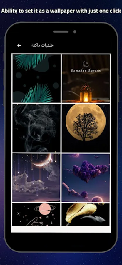The application provides multiple options for customizing your phone's screen, where you can choose the wallpaper that suits your taste and mood from a wide range of available wallpapers. The special features don't stop there, as you can also easily share your favorite wallpapers with your friends and family through WhatsApp.