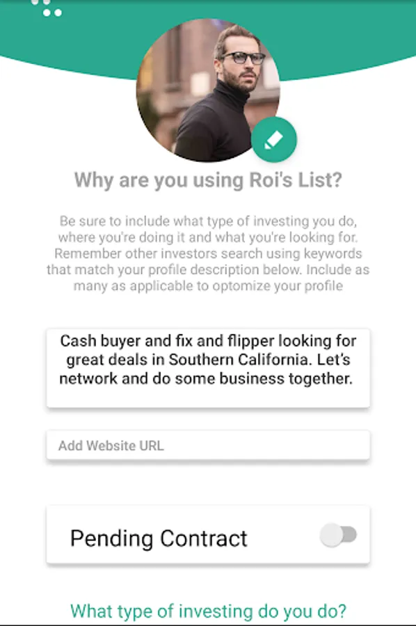 Roi’s List is the everyday essential real estate investing app used and needed by every modern day real estate investor. Whether you’re just starting out or a connected investor, it comprises all of your instant business networking needs.