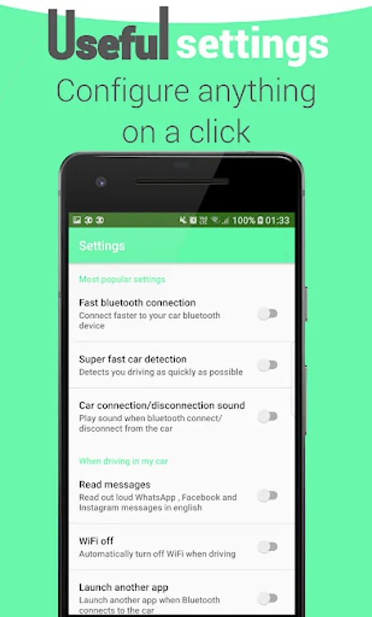 ✔ Super fast car detection - Detects you driving in a super sonic speed and auto connect to the car as quickly as possible