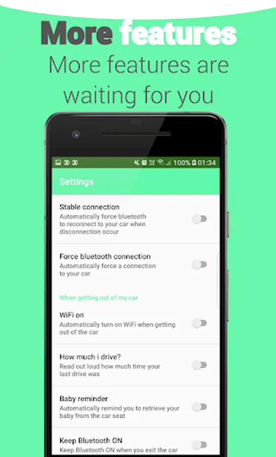 ✔ Baby reminder - Toggle automatically when you get out from the car (optional)