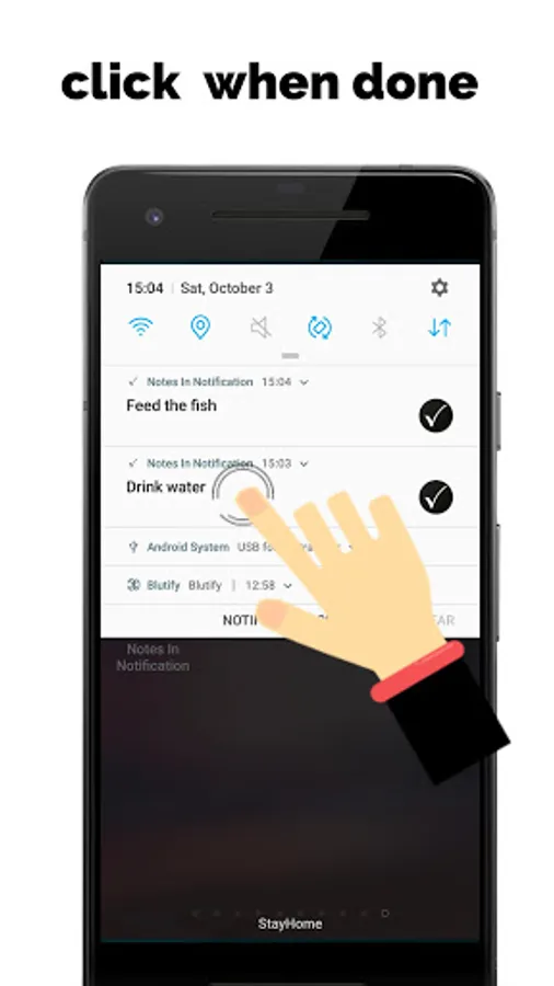 Notes in notification can be very effective to save reminders or notes that will stay in the notification panel as long as you need them.