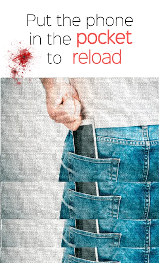 Put the phone in the pocket to reload the gun and get it out from your pocket to shoot