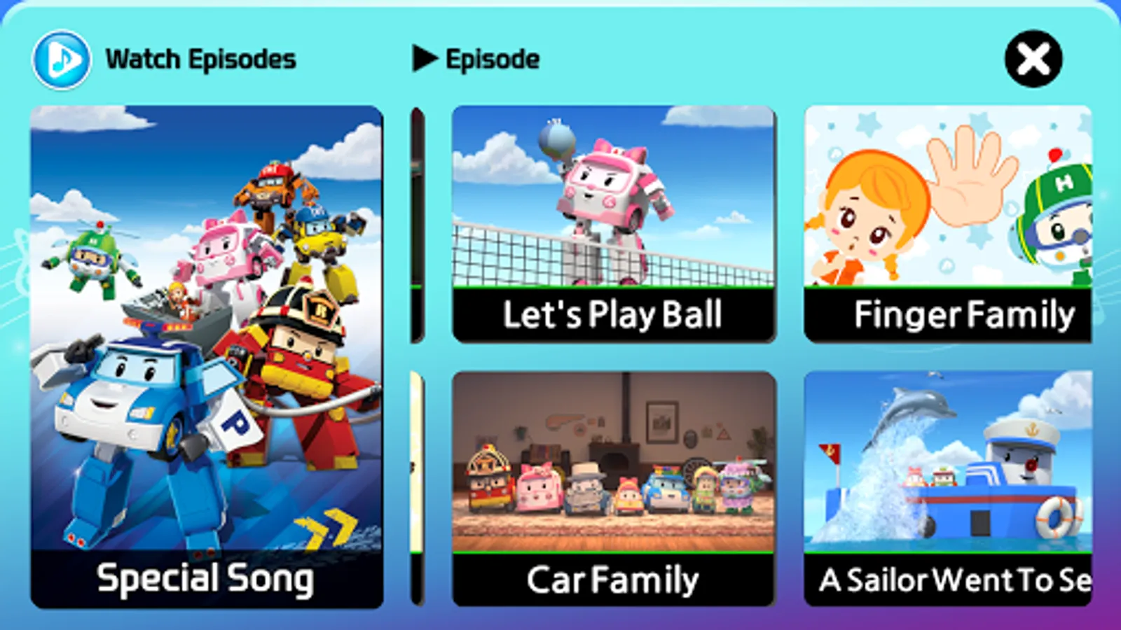 This app includes the SongSong Museum series, the latest Robocar POLI series and music videos from prior series in addition to the 8 free songs.