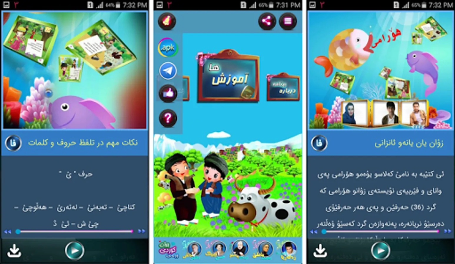 This educational series for the first time to learn the language Vngashtn Hawrami has been prepared which consists of 36 letters. Training is also provided to educate each letter.