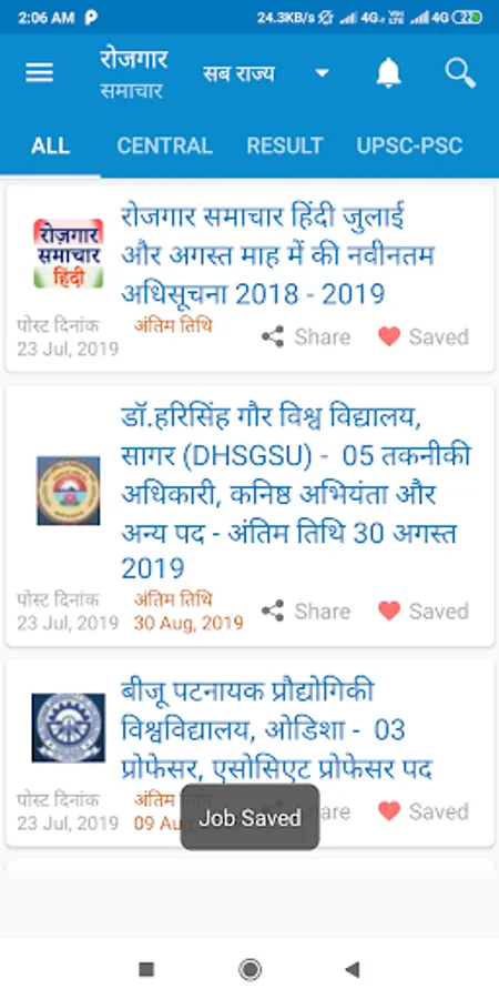 Rojgar Samachar Hindi app gives government jobs alert from all over 29 states of India including Chhattisgarh, Uttar Pradesh, Madhya Pradesh, Bihar, Jharkhand, Delhi, Gujrat, Maharastra, Rajasthan, and Uttrakhand. This app provides government jobs alert and updates in Hindi.