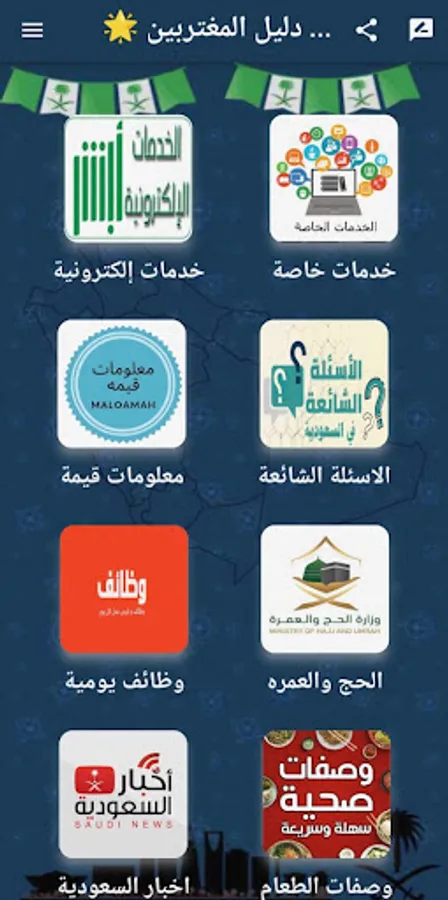 Transport and transportation services: The application provides information about public transportation available in the Kingdom of Saudi Arabia, such as buses, taxis, and mass transit applications. Expatriates can know the timings, routes, and transportation costs, which helps them move efficiently within cities and between different cities.