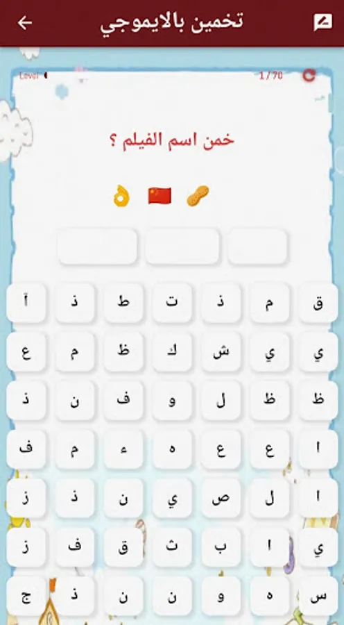Sixth, the game of guessing the movies using the emoji, and this is a very entertaining game that measures the duration of your intelligence. It is an attempt to drag the correct letters to each other to form the word like a crossword.