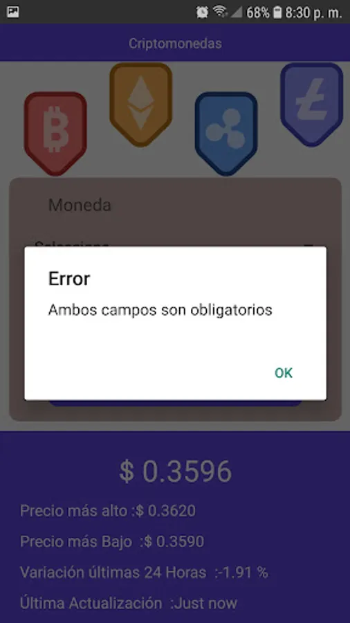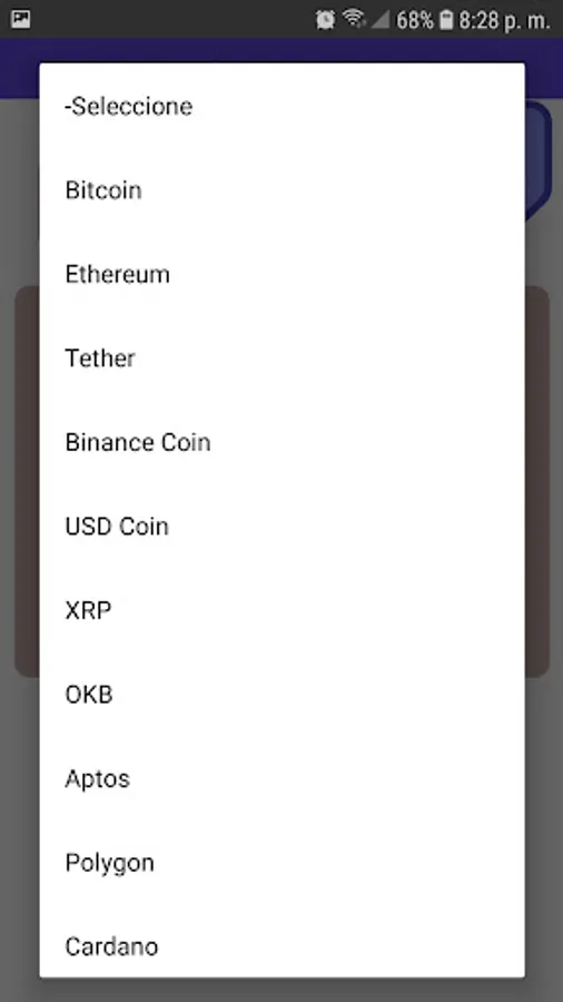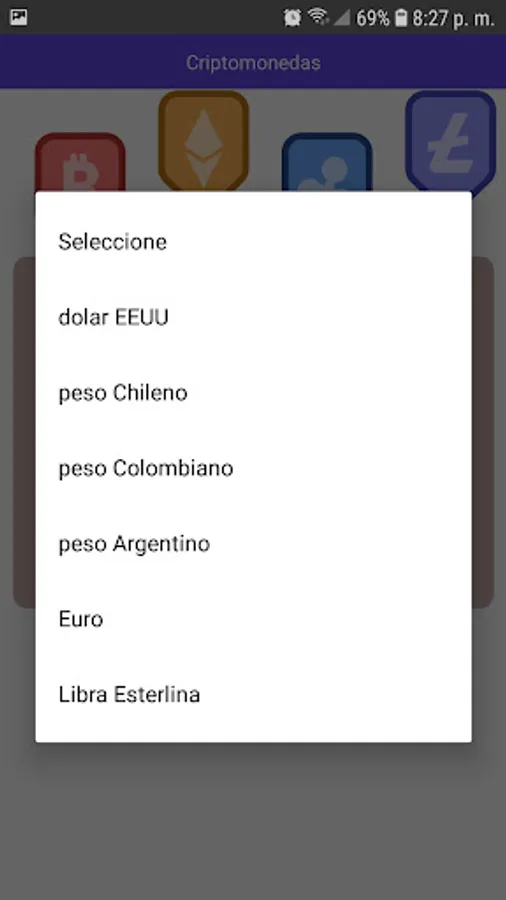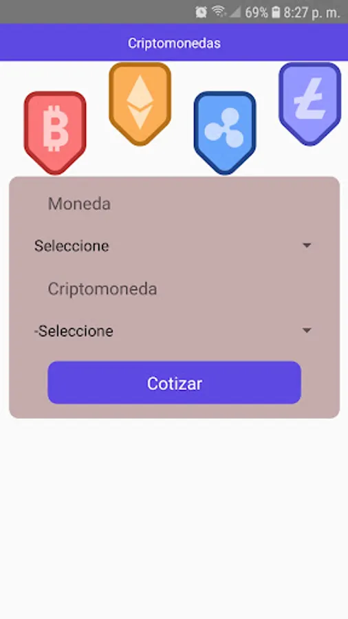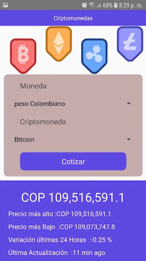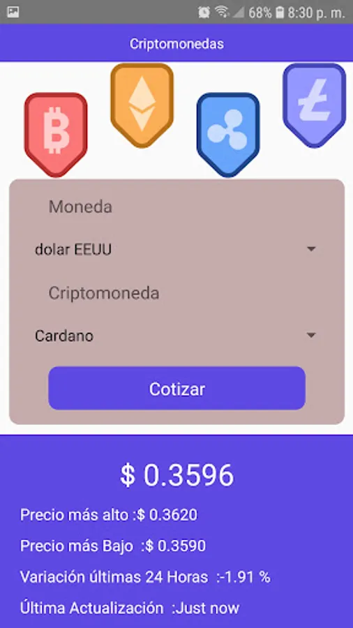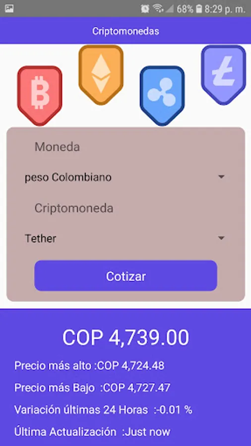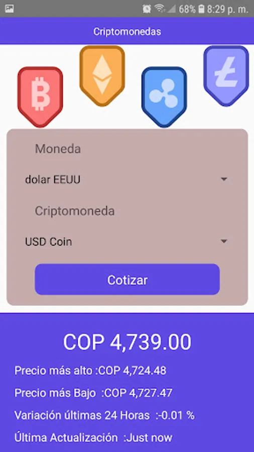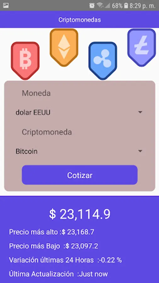 Application to obtain the value of different currencies related to the 10 most important cryptocurrencies