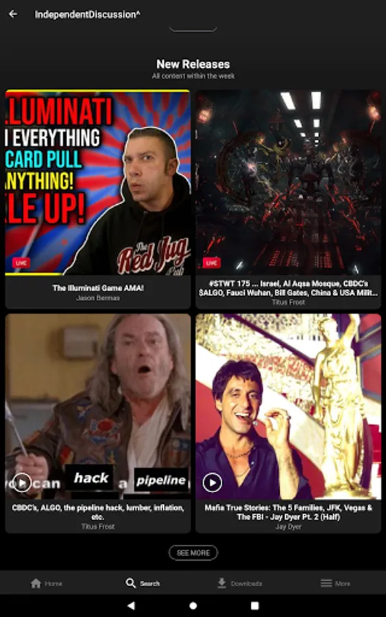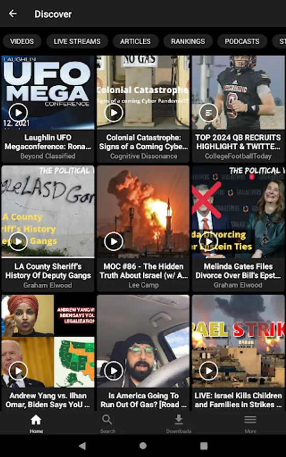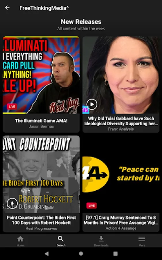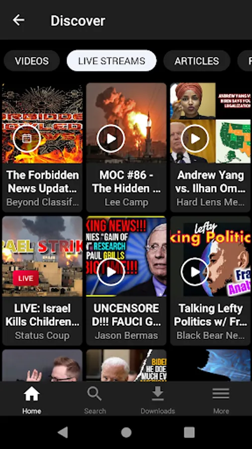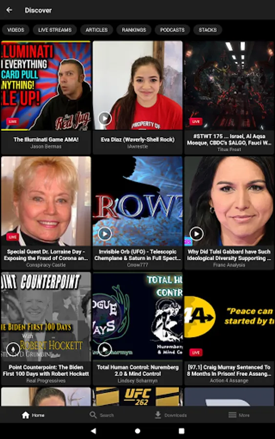 Watch live streams, listen to podcasts, or read articles by independent journalists, sports media companies, and a variety of creators. Catch up on premium exclusive content from Whitney Webb, Sam Tripoli, Bryan Callen, Jason Bermas, Jimmy Dore, Graham Elwood, IA Wrestling, PA Power, and many more.