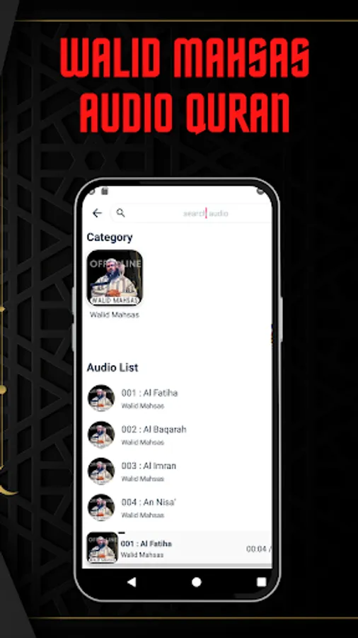 At Walid Mahsas Quran Offline you can find surahs of the Qur'an, including: