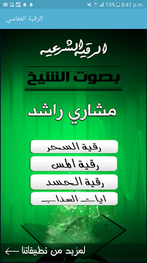 الرقية الشرعية بصوت الشيخ مشاري راشد العفاسي بدون انترنت mp3 رقيه الحسد والسحر والمس وعلاج الحزن والضيق والهم والعين الزواج والرزق وتفريج الهم والغم والضيق وتوفير الرزق والزواج بإذن الله.