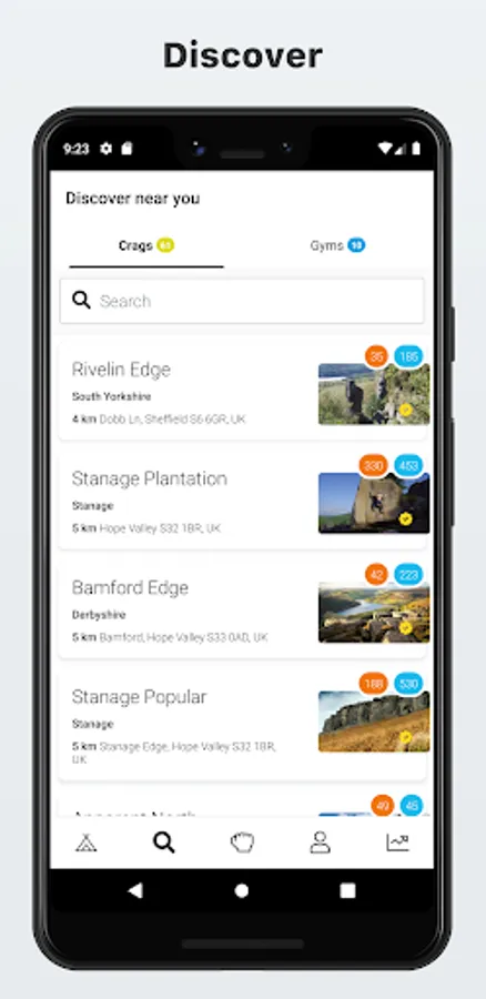 CRAGS & GYMS: See routes at your local crags and gyms, or be the first to add them.