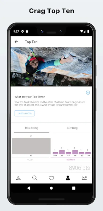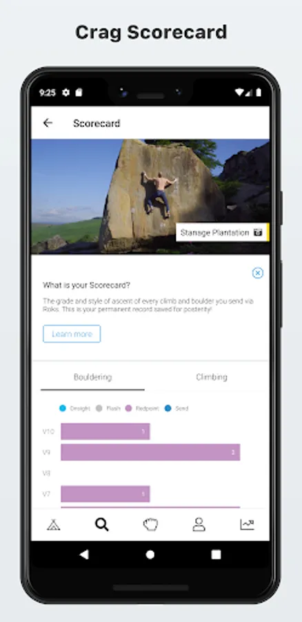 TRACK & ANALYSE: Get key stats like number of sends, top ten sends and grade intensity.