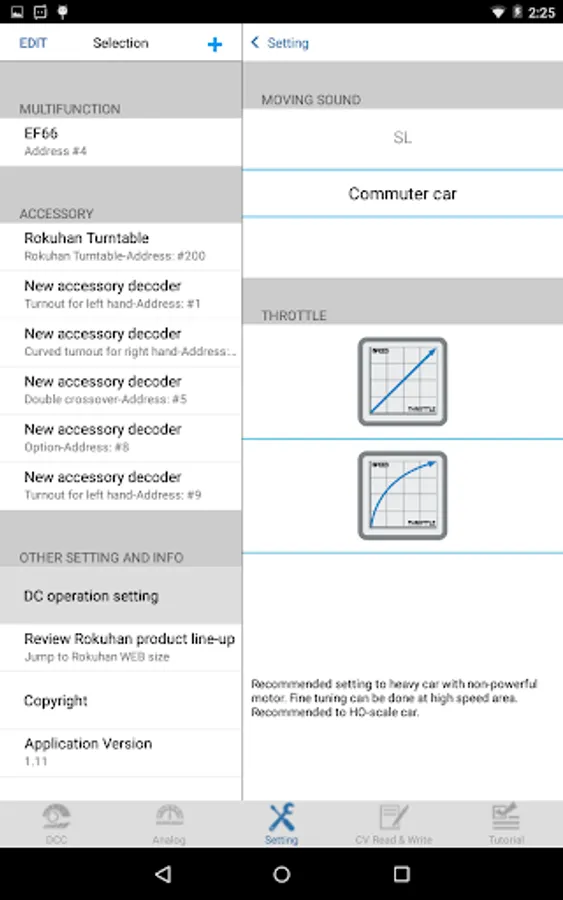 ●This application functions on Smart Phone and Tablet Phone, which will make it easy to operate most model railroads when used together with Rokuhan e-Train controller"(sold separately).
