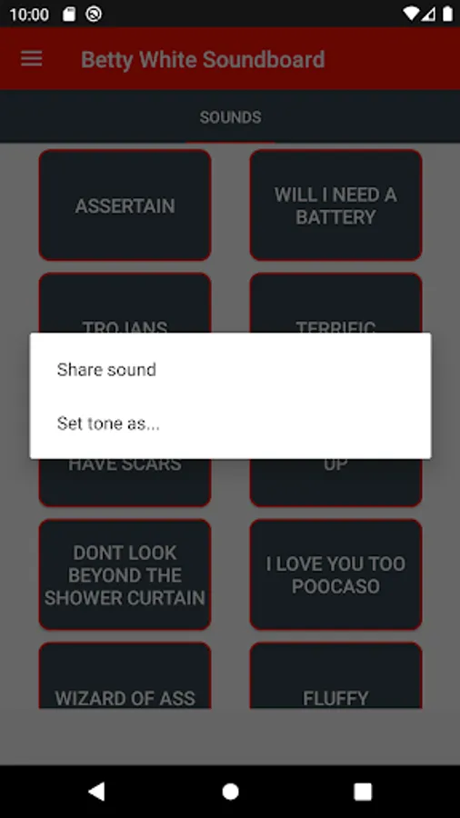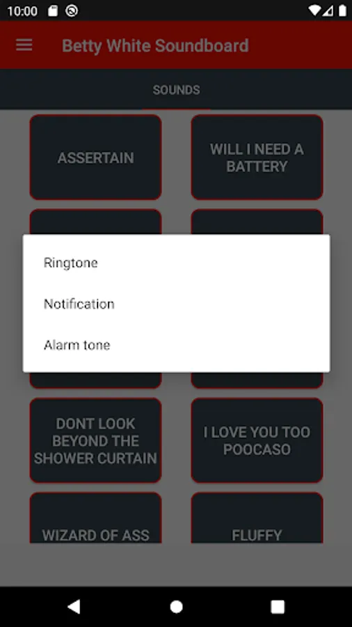 * Set Betty White sounds as ringtone, alarm or notification tone.