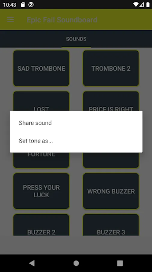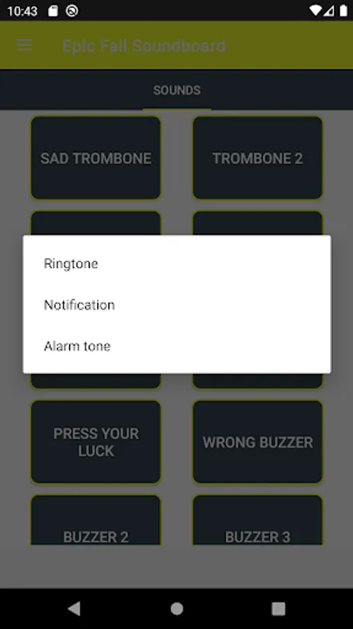 * Set Epic Fail sounds as ringtone, alarm or notification tone.
