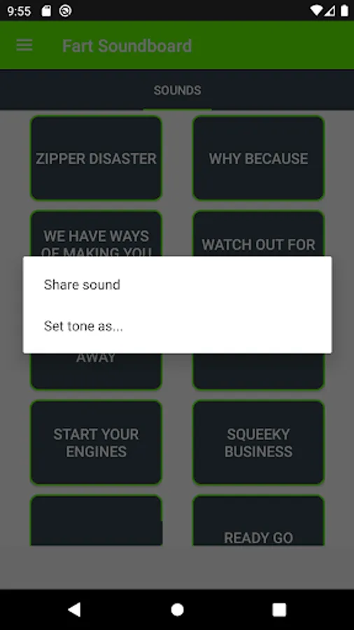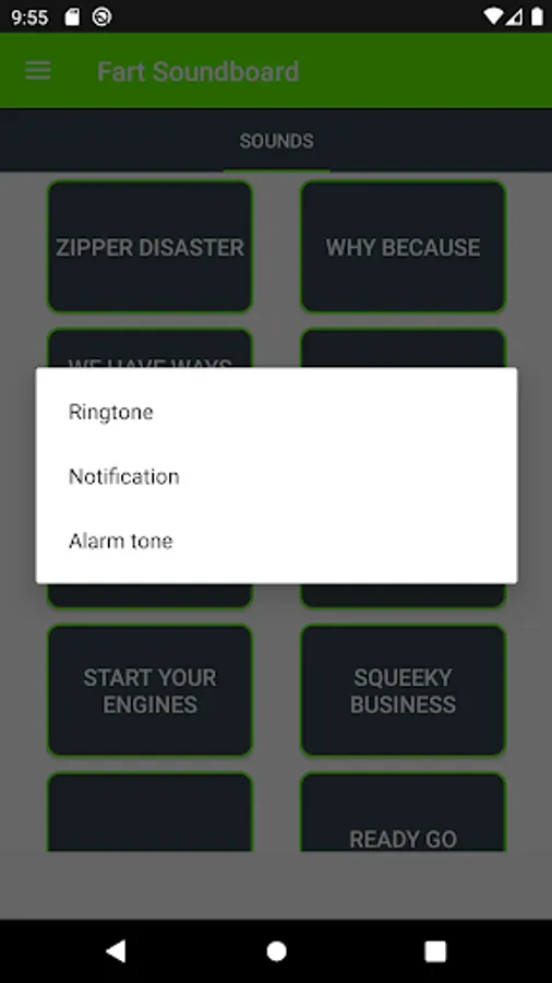 * Set Fart sounds as ringtone, alarm or notification tone.