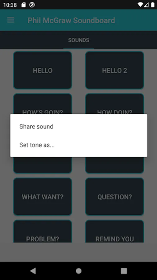 Phil McGraw soundboard application contains various sounds of Phil McGraw. Also you can set as ringtone, notification tone or alarm tone these Phil McGraw sounds. Enjoy it