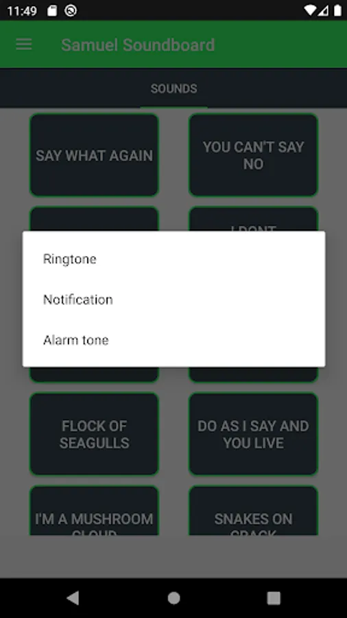 * Set Samuel sounds as ringtone, alarm or notification tone.