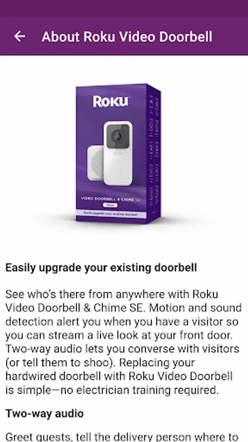 The app includes Roku video doorbell features, how to setup and frequently asked questions. You can learn that how to fix a video recording, how to change the tune and adjust the volume of your roku wired video doorbell.