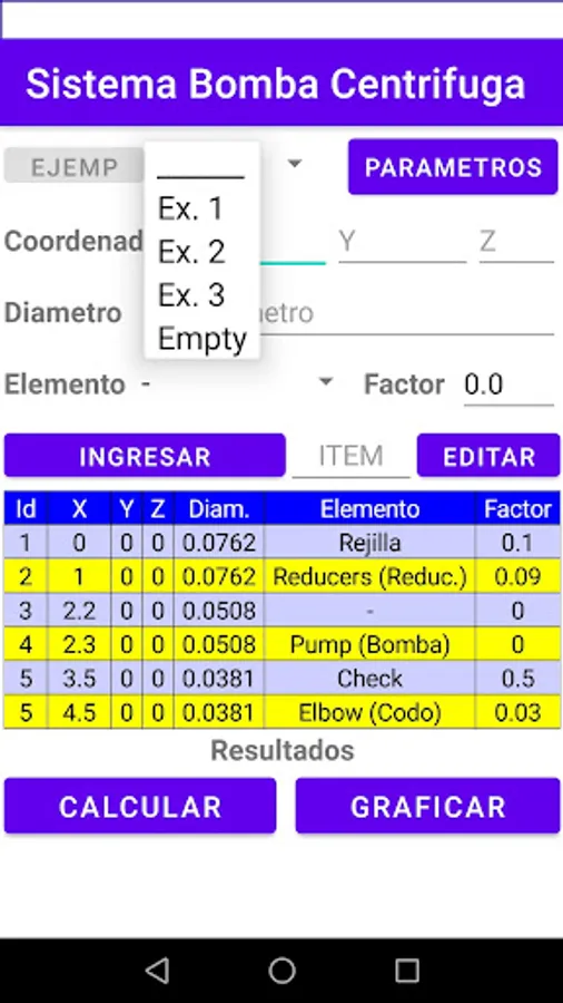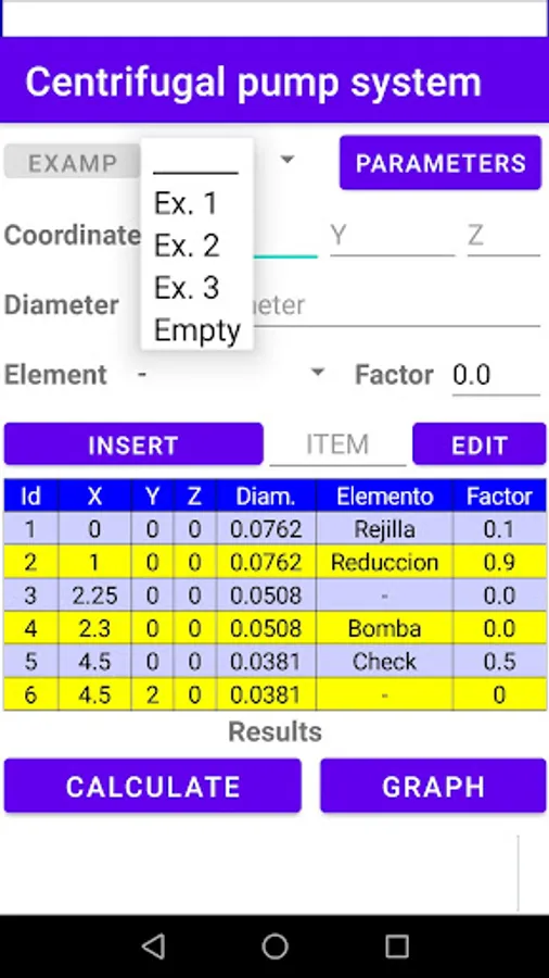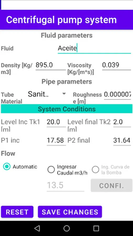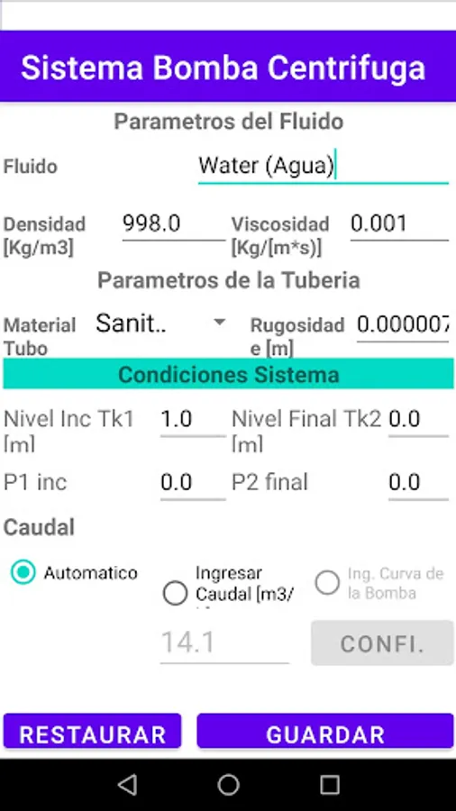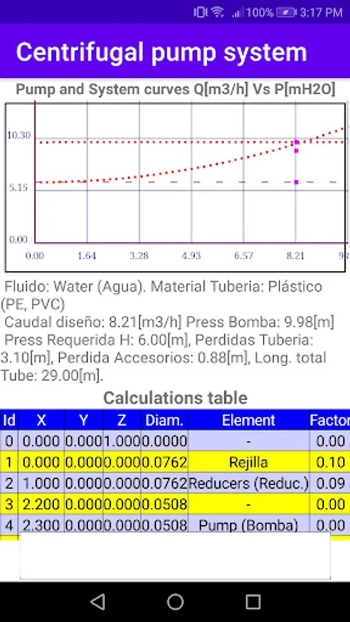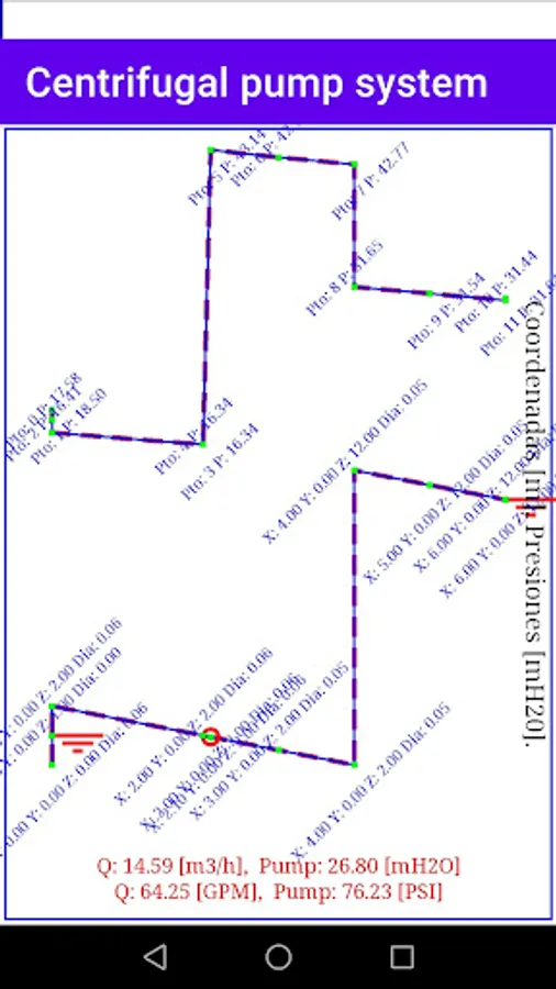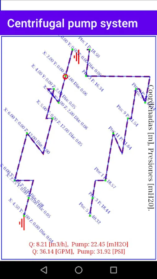 Determines pressure losses in the system according to the properties of the fluid and pipe: dimensions, pipe material, roughness, viscosity, density, curve of the centrifugal pump. It has examples.