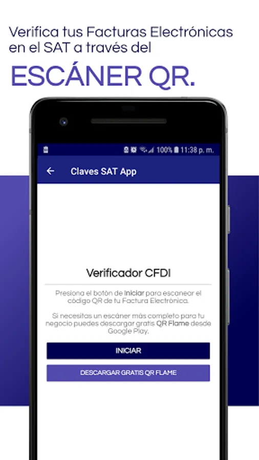 • CFDI verifier by means of QR code to verify the status of your Electronic Invoice and validate if the voucher was certified by the SAT.
