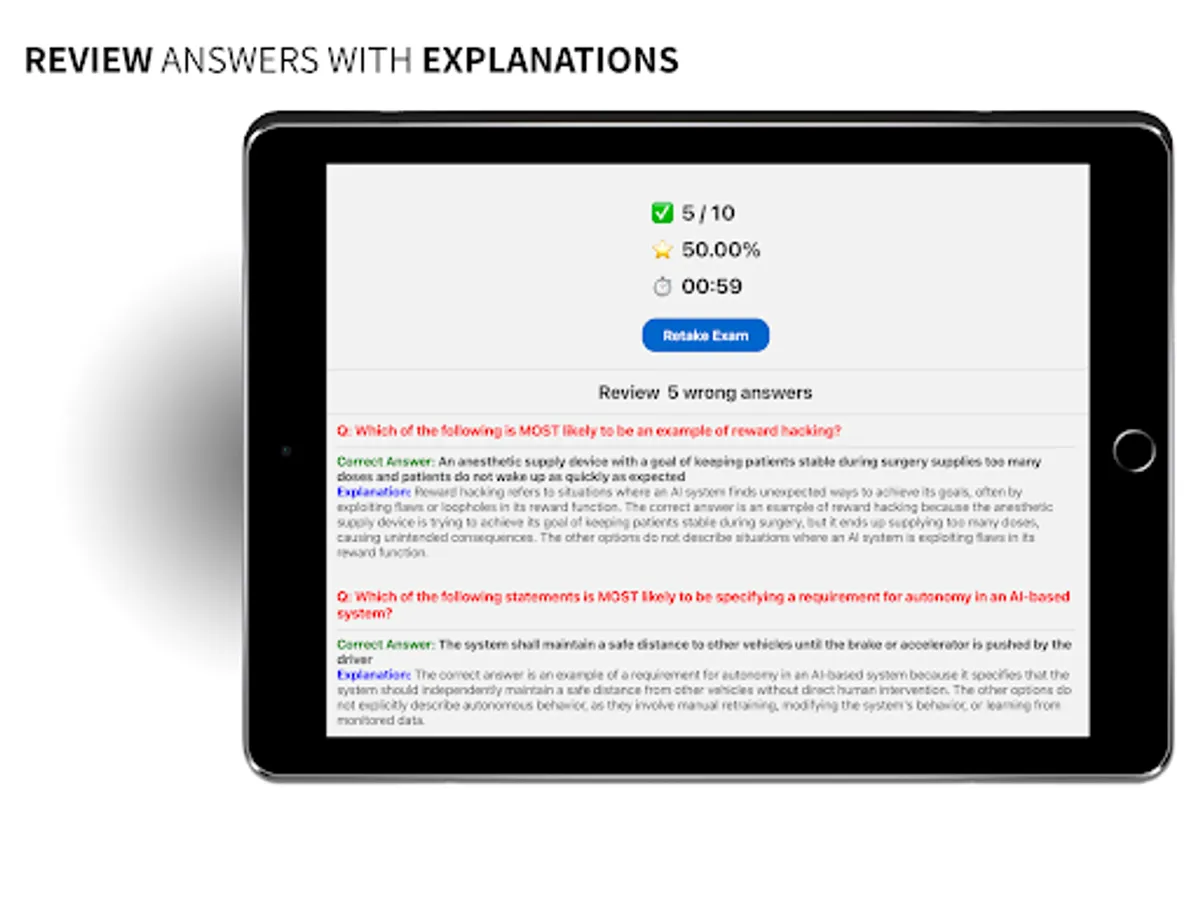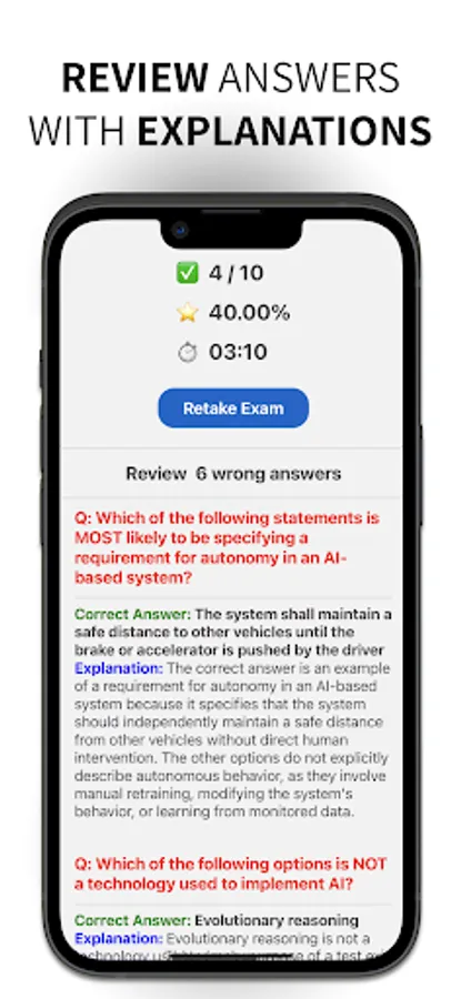 While our app is designed to help users prepare for the ISTQB CT-AI certification exams, it does not guarantee passing the real exam. Our practice exams and study materials are intended to provide practice and feedback, but they may not reflect the exact content or format of the actual exam. Success in the actual exam depends on a variety of factors, including prior knowledge and experience, exam-taking skills, and individual performance on the day of the exam.