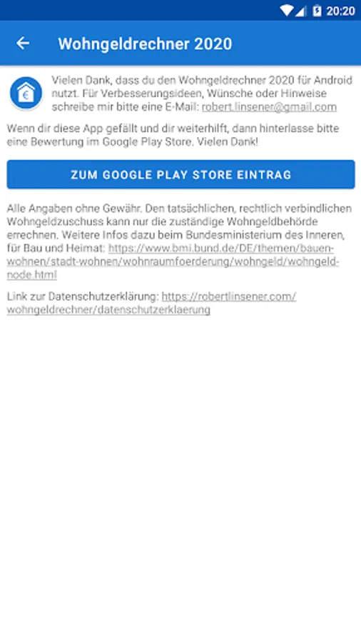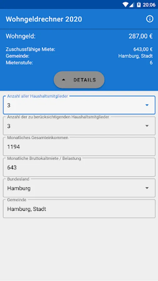 The calculation is based on the mathematical provisions of the latest version of the Housing Allowance Act (as of January 2020).