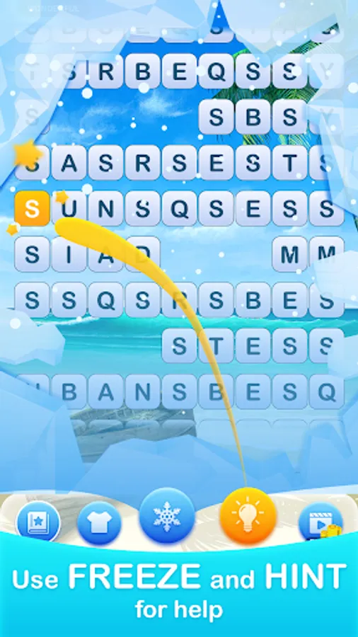 ► Search words from scrolling letters.