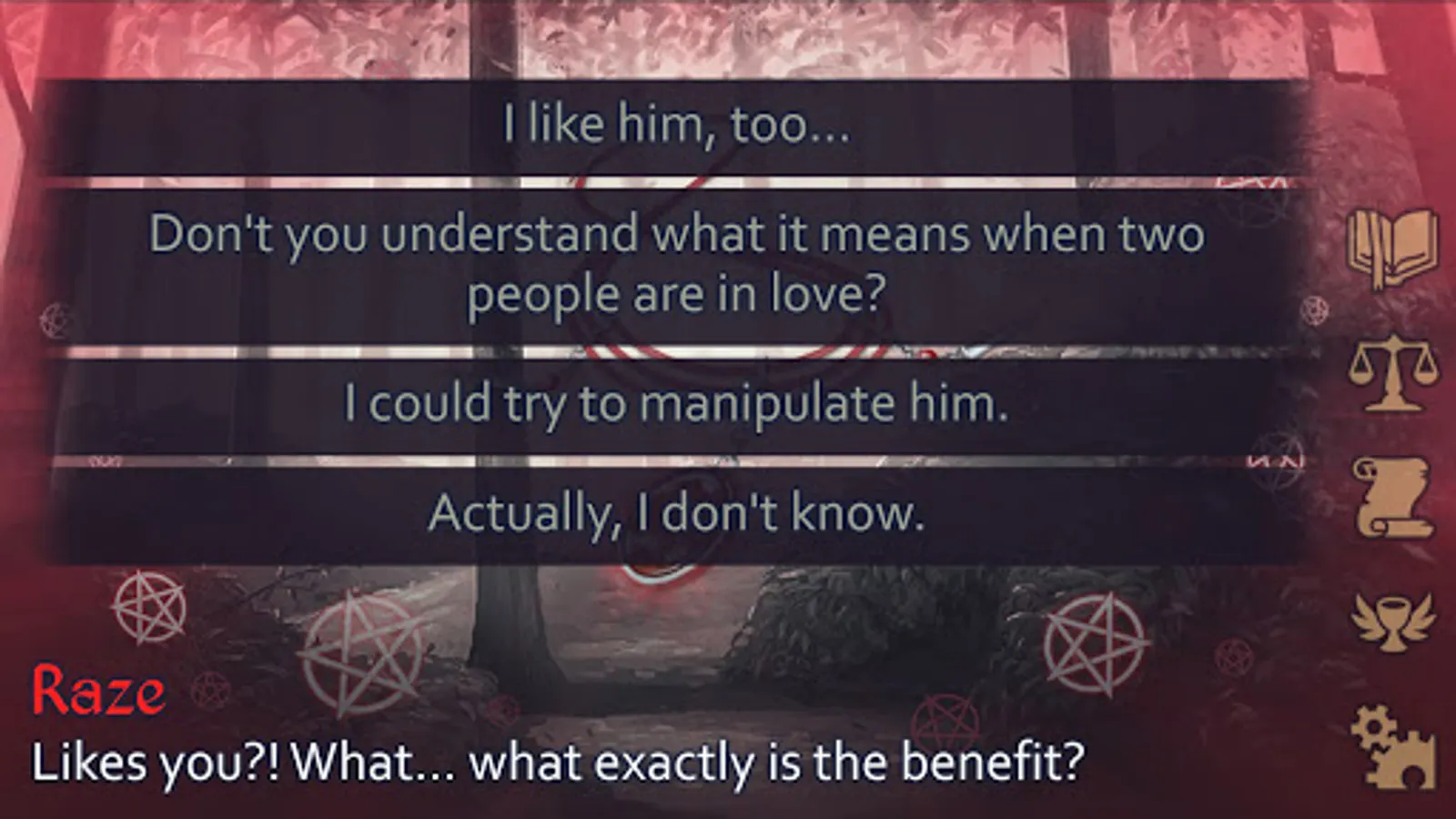 Discover the secrets of the witches and demons in this dark fantasy romance game, featuring a female protagonist whose personality is completely up to the player thanks to extensive dialog choices.