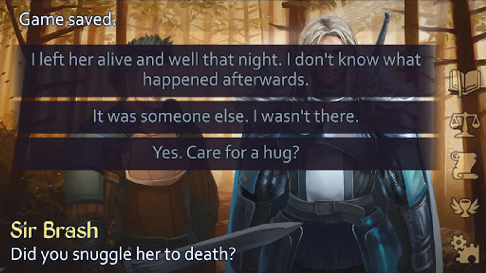 • Custom alignment system measured by two scales: Good/Evil and Tactful/Defiant.