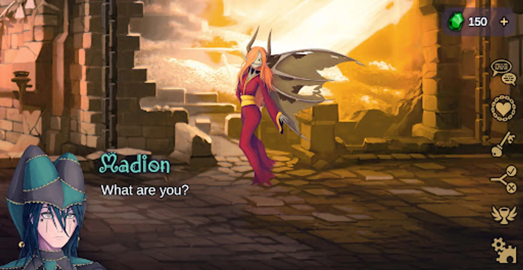 You play as Madion, the jester who has lost his memories. Having been forced into a life of chaos, uncertainty and deceit, Madion starts off feeling conflicted, jealous and spiteful. He needs to let go of his dark thoughts and redeem himself. You can make choices for him, affecting his relationships with the other characters.