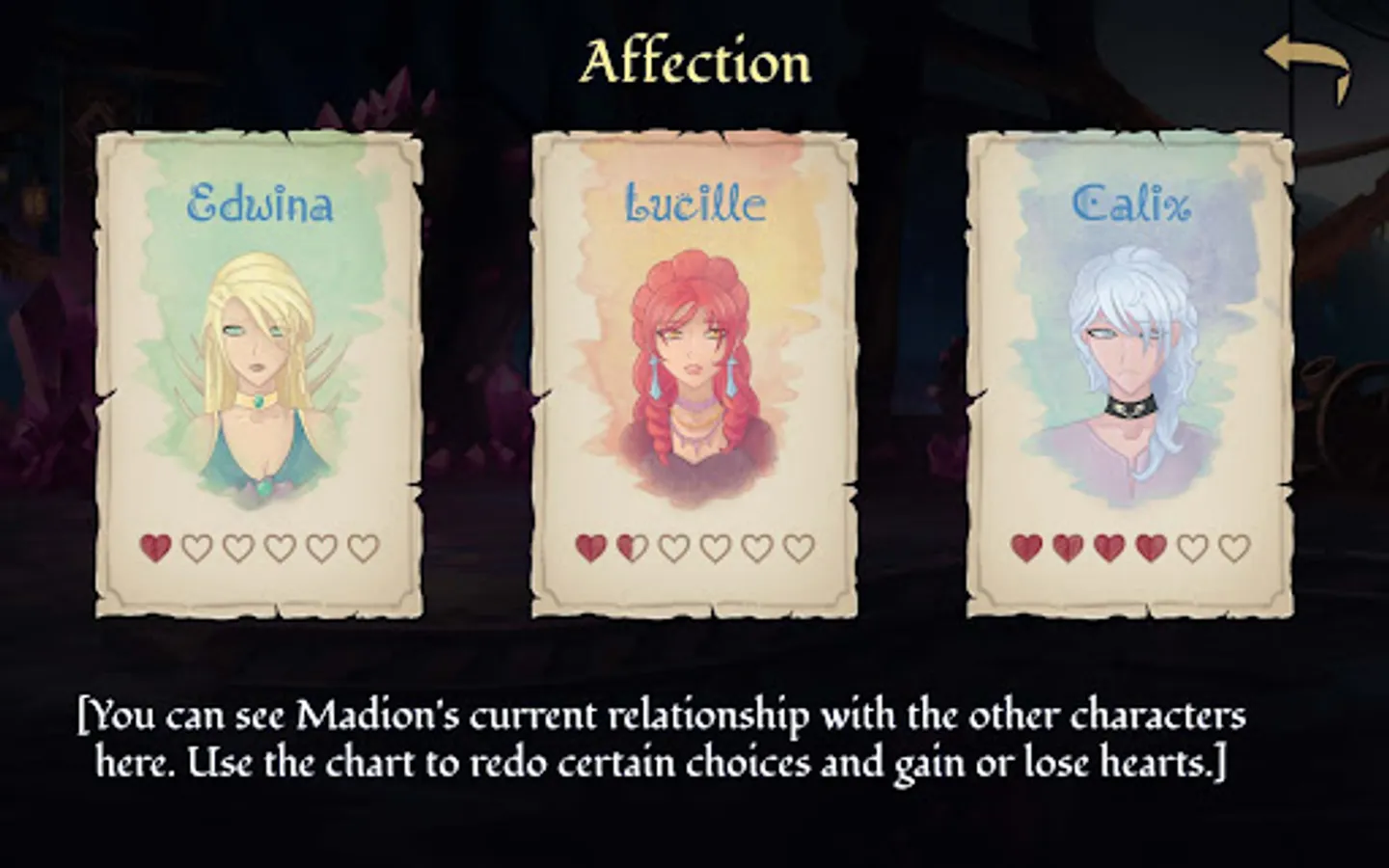 Male/Female and Male/Male romance. Choices to build, or re-build, a relationship with one of three characters: Lucille, Calix, or Edwina.