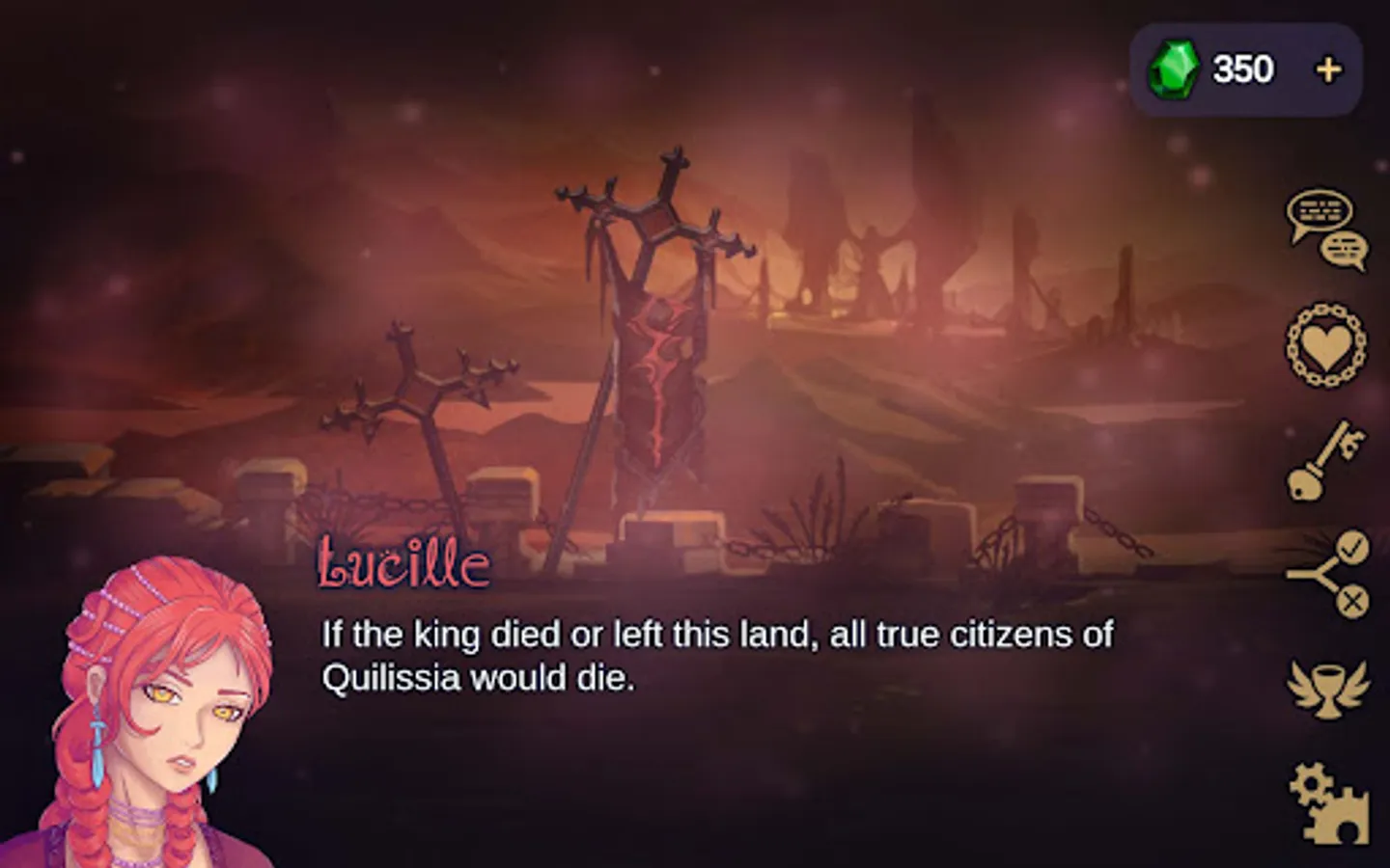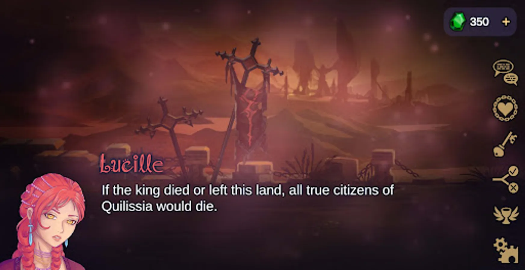 Lady Lucille was forced to live in the king's palace while he waged war on her homeland. Quiet and cunning, she adapted quickly. Lucille believes she understands Madion, and is always there to support him.