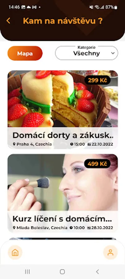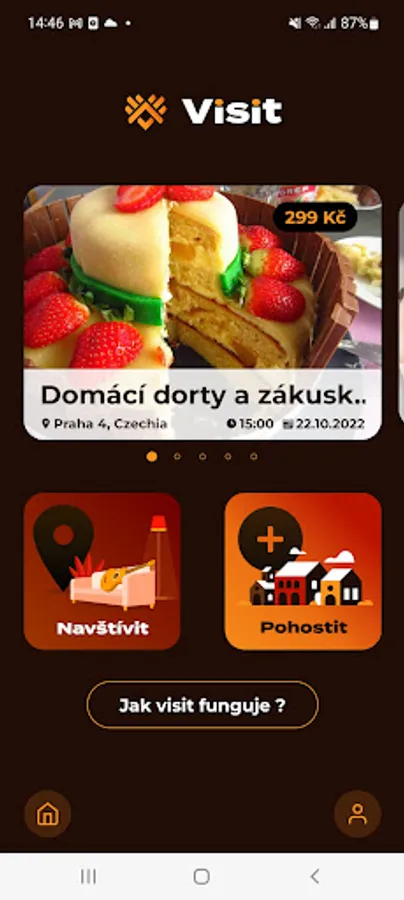 After successful registration and setting up your profile, you can start attending events - VISIT or create them yourself using the HOST button. A simple rating system as well as a map of offers and sorting in categories will help you with your selection. Creating and issuing an offer is free and time-limited. Insert photos, description, event date, category and, if applicable, the number of available seats. Shoppers simply select a suitable offer and will be directed to the payment gateway via the I AM INTERESTED button.