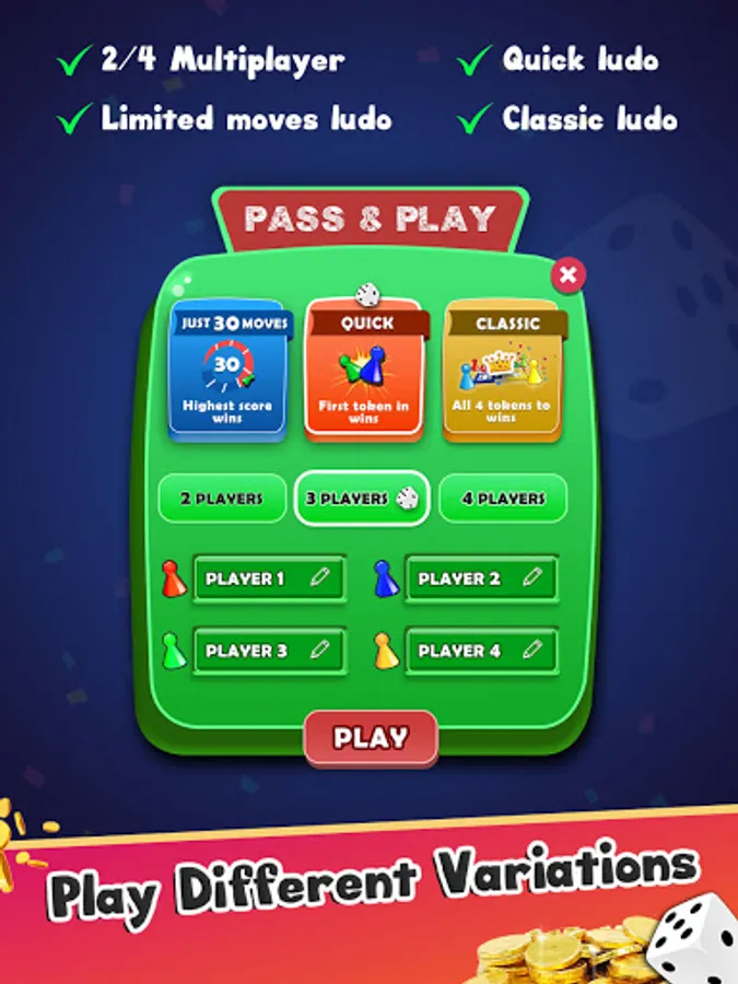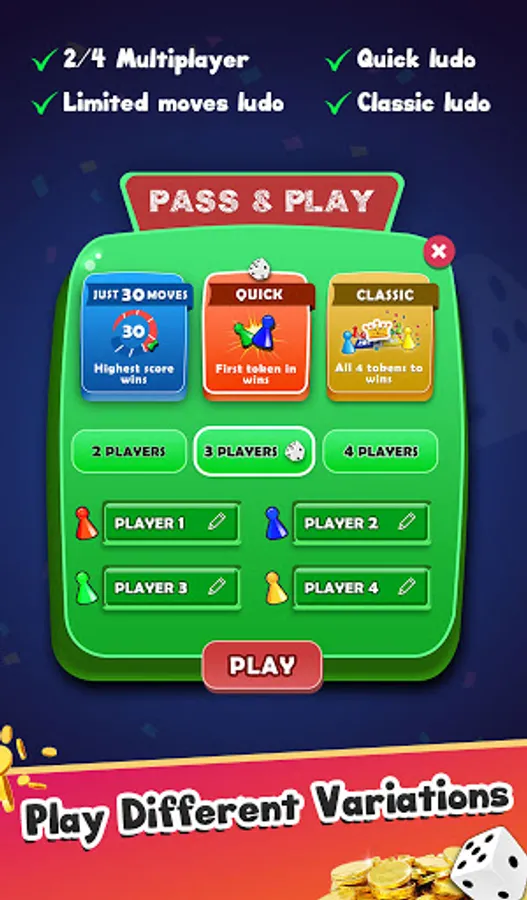Different types of ludo game play available: