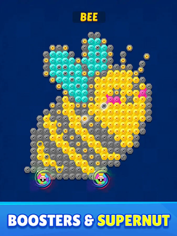In this nut bolt game, you'll encounter a dazzling array of colorful nuts and bolts.