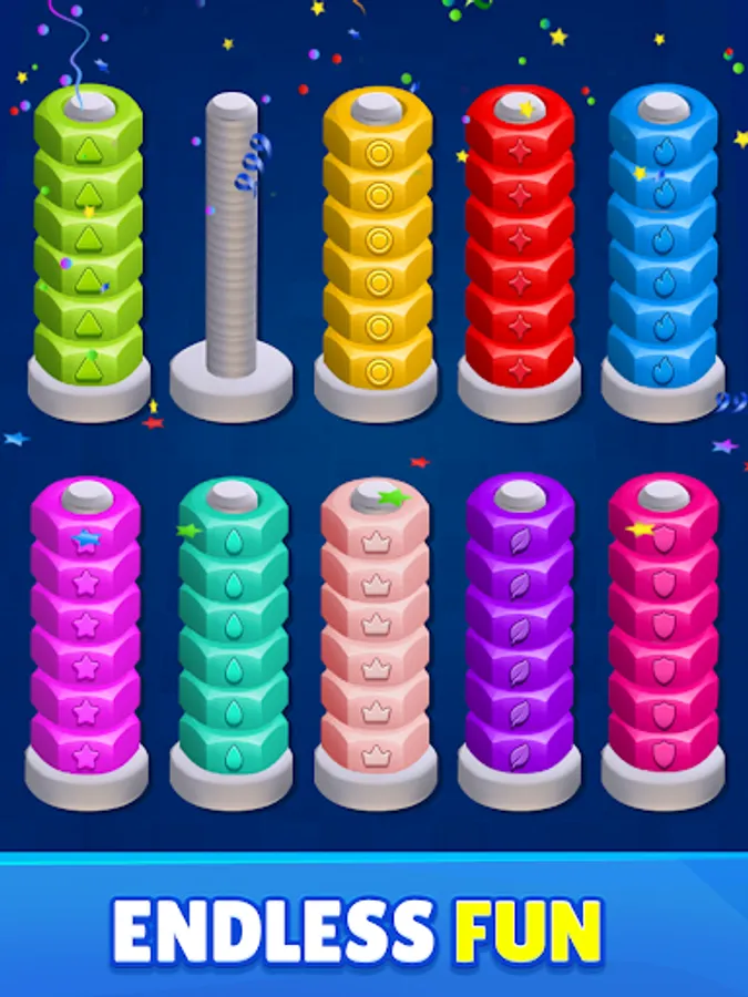 - Hundreds of challenging levels & sorting puzzles to keep you sorting nuts and bolts for days.