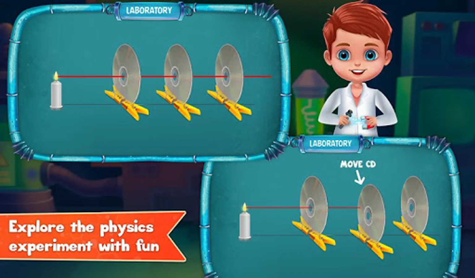 You’ll find a lot of experiments that could be done with simple ingredients that are easily available around your home (with adult supervision of course). Learn all the new physics concept with a step by step guided experiments with animation and instructions to explain you the science behind the experiments.