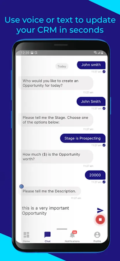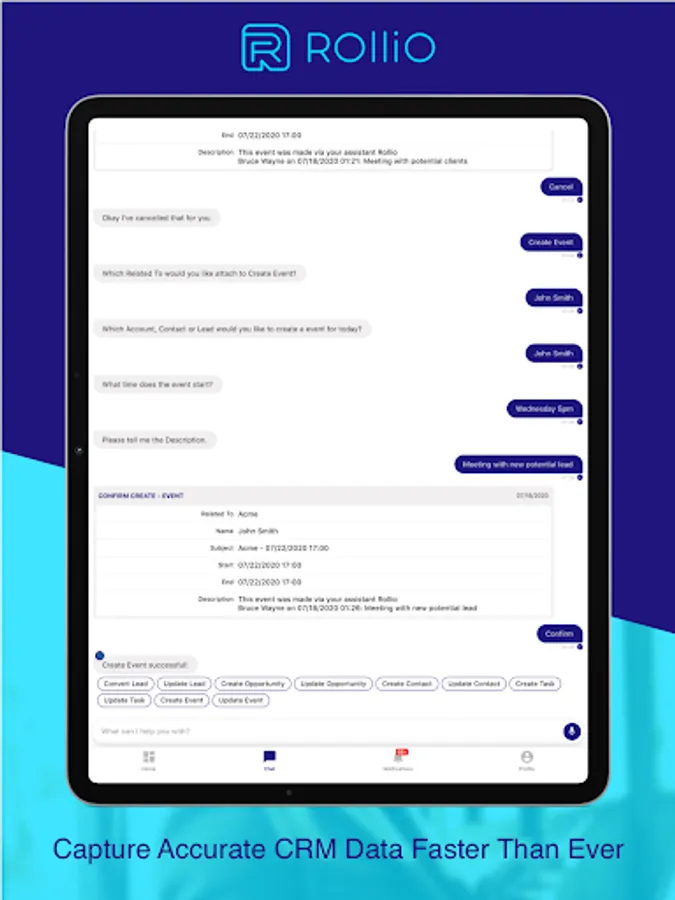 Say “Hello” to your new assistant. Rollio™ works with your CRM, including Salesforce™ and SAP Cloud for Customers™, allowing you to text your CRM, rather than waste time filling out clunky forms. Send a text, and Rollio will break up your message and put every piece of data into the appropriate fields.
